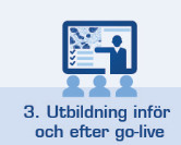 Utvärdering: Säkerställ att det finns en tillräckligt genomgripande och pedagogisk utbildningsplan som innehåller dels utbildning innan driftstart och dels löpande upplärning. En leverantör med stor kundbas har fördelen att kunna dela med sig av kunskap från andra kunder, s.k. ”best practice” inom arbetssätt och arbetsflöden.