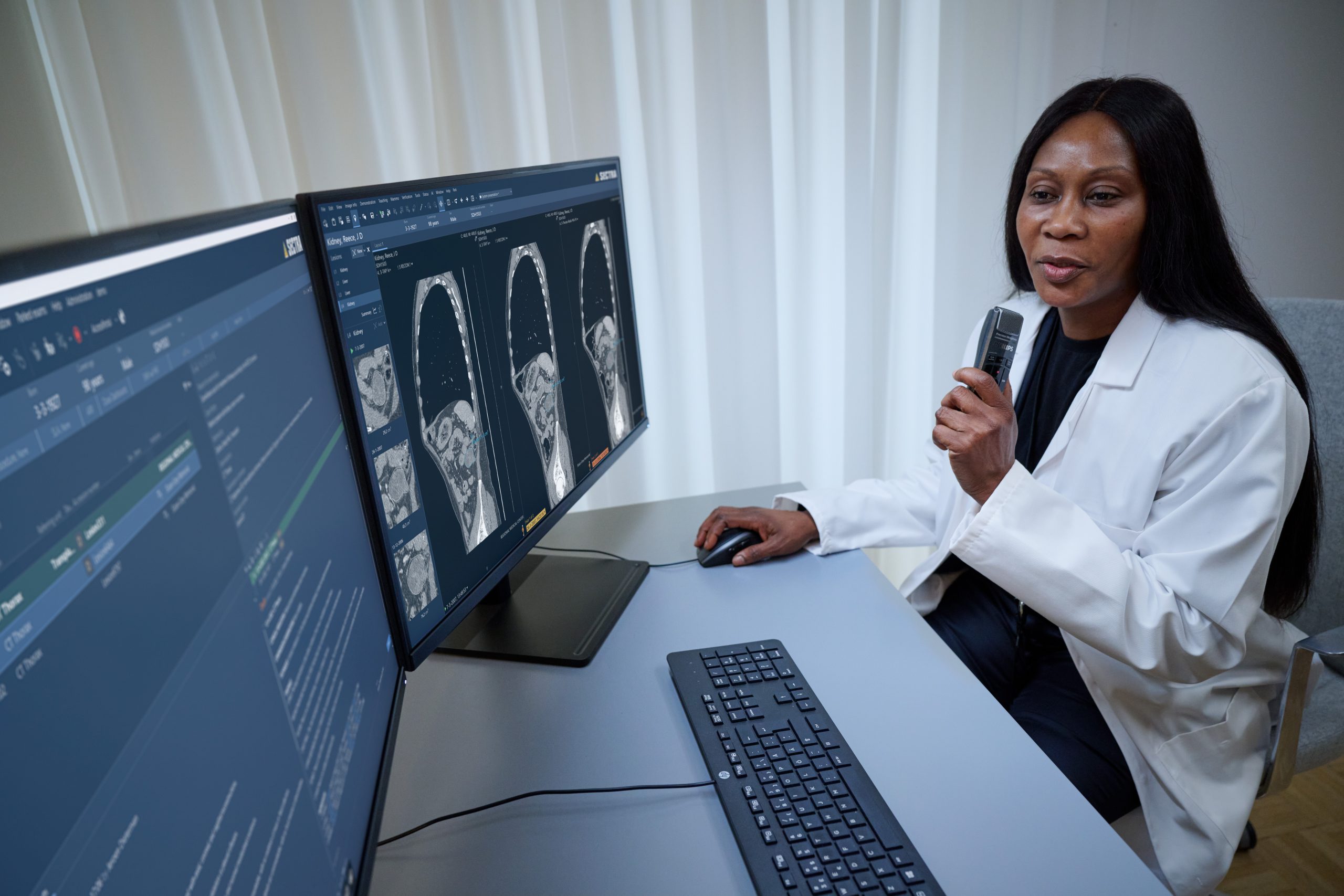 With flexible input and navigation methods, you can effortlessly switch between viewing images and writing your report. And when you need a hand, share directly and communicate within the diagnostic application.