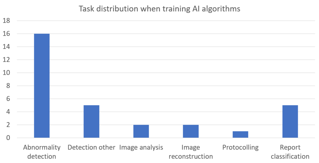 30 abstracts reported on work where an algorithm was trained for a specific task. The tasks were distributed as follows:
