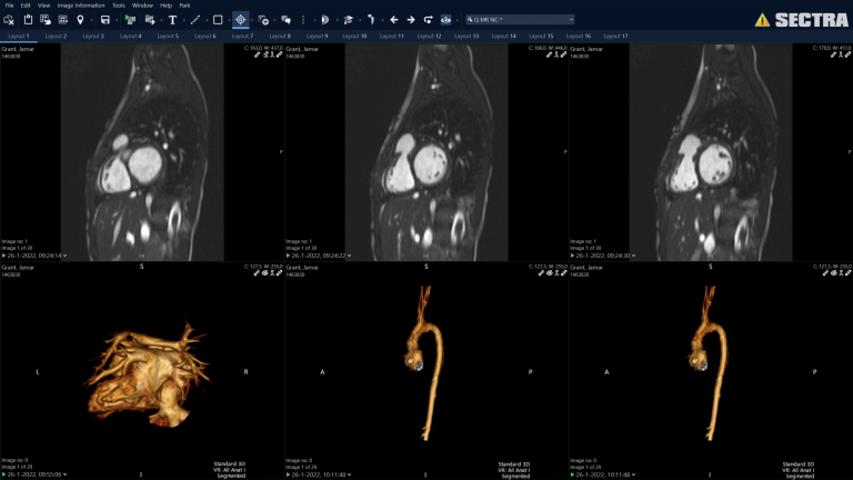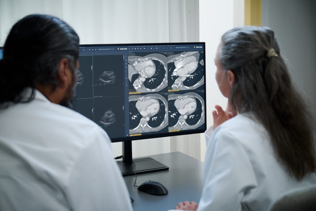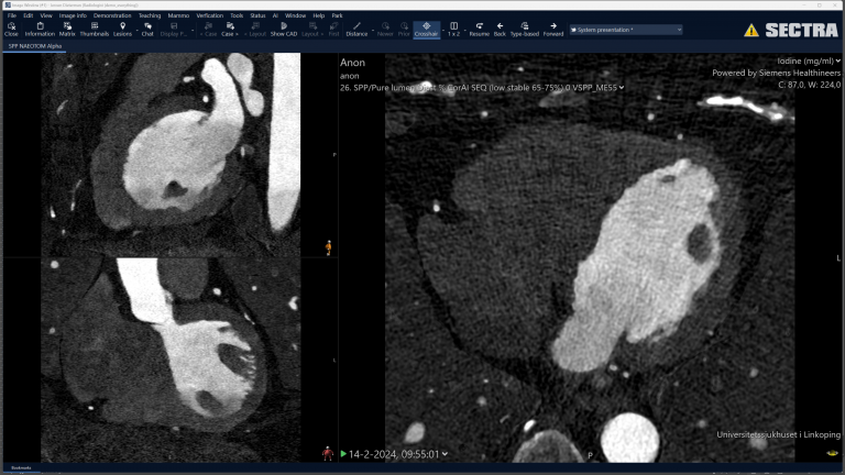 Cardiac CT is reviewed in Sectra IDS7 with 2D, MPR, or 3D mode with advanced display protocols and built-in vessel analysis tools. The platform is ready for the latest photon-counting CT technology, improving resolution and precision while reducing both acquisition and diagnostic time. For advanced post-processing, users can launch their preferred cardiac CT applications through the diagnostic application Sectra IDS7’s, open and secure API.